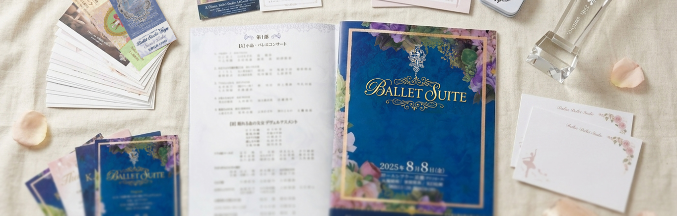 ポーズの美しさ、衣装の色彩、舞台の空気感。バレエの優雅さを損なわないよう、フォント一つから丁寧にセレクトします。